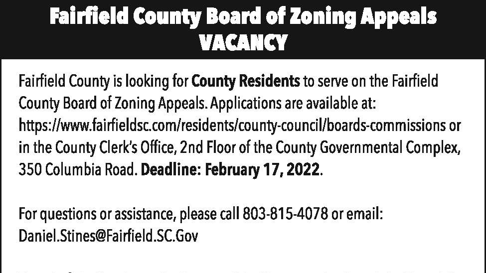 Fairfield County Board of Zoning Appeals Vacancy