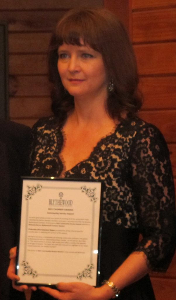 Those awards went to Small Business of the Year, Sandy Khan representing State Farm; Large Business of the Year, Jasmin Fonce representing MekraLang North America; Community Service Award, Michaela Barno representing the Blythewood Farmer’s Market; and Business Person of the Year Phil Frye, representing the Chamber.