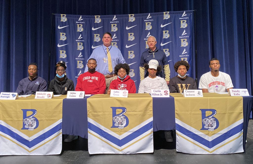 BLYTHEWOOD – Blythewood High School recognized seven members of the Class of 2022 Wednesday who have committed to continuing their athletic careers on the collegiate level. The group included three football players, two soccer players, and two track and field athletes.