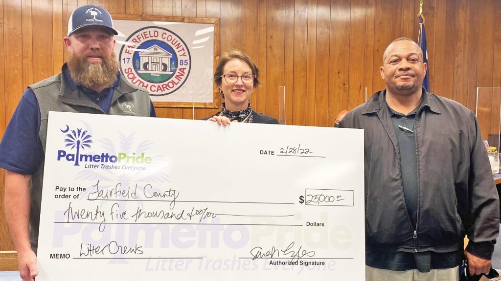 WINNSBORO – Fairfield County recently received a $25,000 Litter Crew grant from Palmetto Pride for a litter cleanup program. The County, through the Department of Public Works, will use the grant to start a litter pick up program.