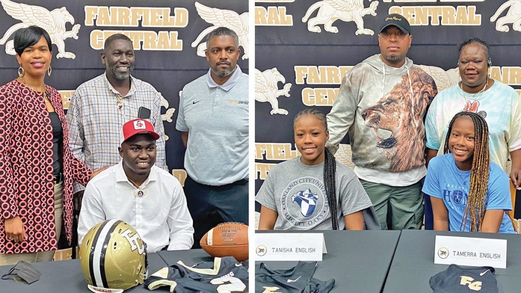 WINNSBORO – Three Fairfield Central student-athletes signed their letters of intent on Wednesday, March 2. Pictured at left, Stephon Gadsden, quarterback for the Griffins, made his plans to play football at South Carolina State University official. According to stats on Maxpreps, Gadsden averaged 99 passing yards per game and 65.2 rushing yards per game in his career as a Griffin.