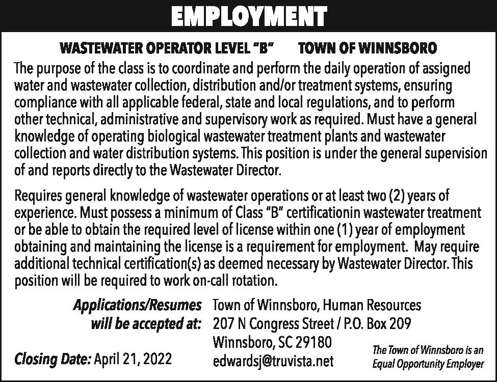 TOW Employment: Wastewater Operator