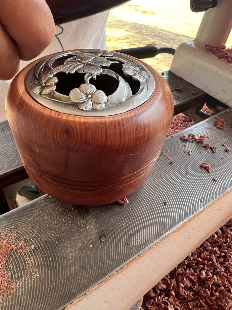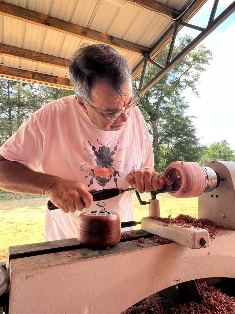 Fabel Farm on Hinnants Store Road featured not only the farm’s own vegetables but several vendors including Kevin Cullis’ demonstration of turning a block of cedar into a charming potpourri pot topped with an intricately carved silver lid.