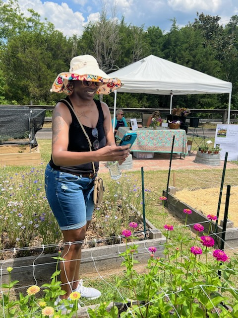 Master Gardner Linda Bradley, owner of Purple Tuteur Farm, conducts a garden tour on Sunday.