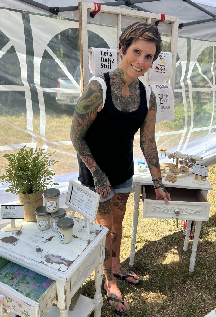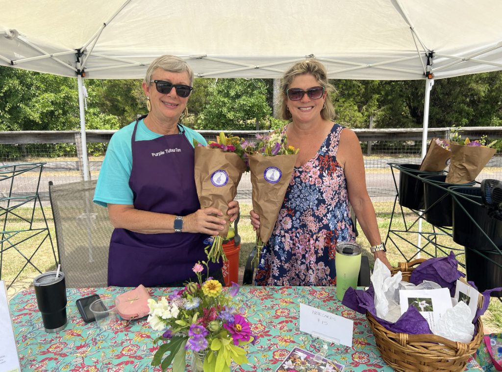 The Purple Tuteur Farm on Langford Road, which grows and sells a wide variety of garden flowers to local florists as well as to the public, featured not only its blooming gardens, but several vendors – May Vokaty’s Molly Creek Soaps; Sculptor Ellen Emerson Yaghjian’s hammered copper artwork, and others.