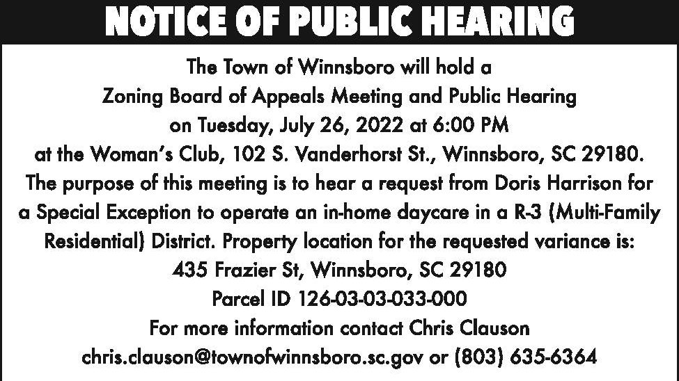 Notice of Public Hearing: TOW Zoning Board of Appeals