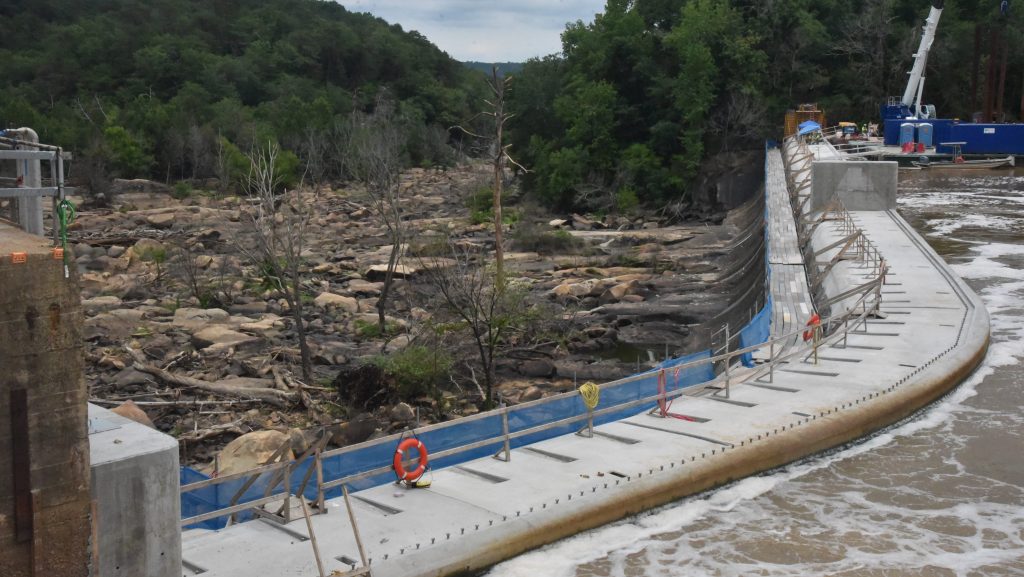 The two whitewater channels – the long bypass channel and a short bypass channel – are for two very different levels of whitewater rafting experience. The scale for difficulty of rapids goes from Class 0 to Class V, “from flat water to absolute man-crushing danger,” Project Manager Tim Huffman said.