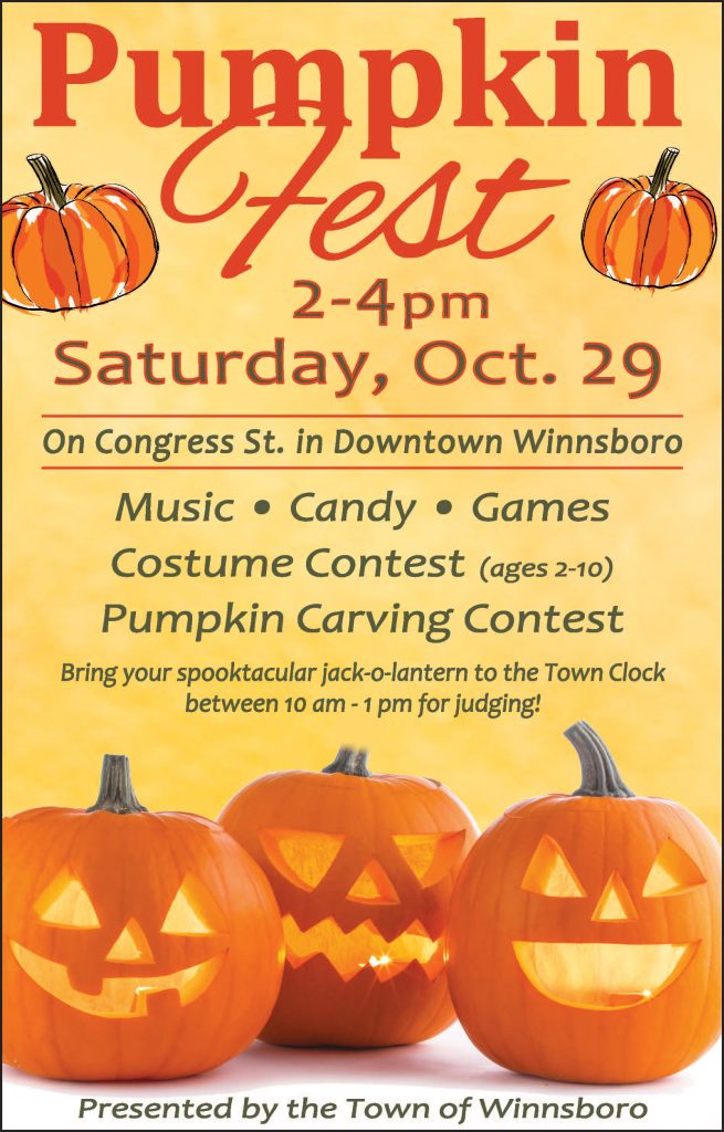 Before taking the Ghost Walk, plan to join the fun at Pumpkin Fest from 2 – 4 p.m., on Congress Street in downtown Winnsboro.