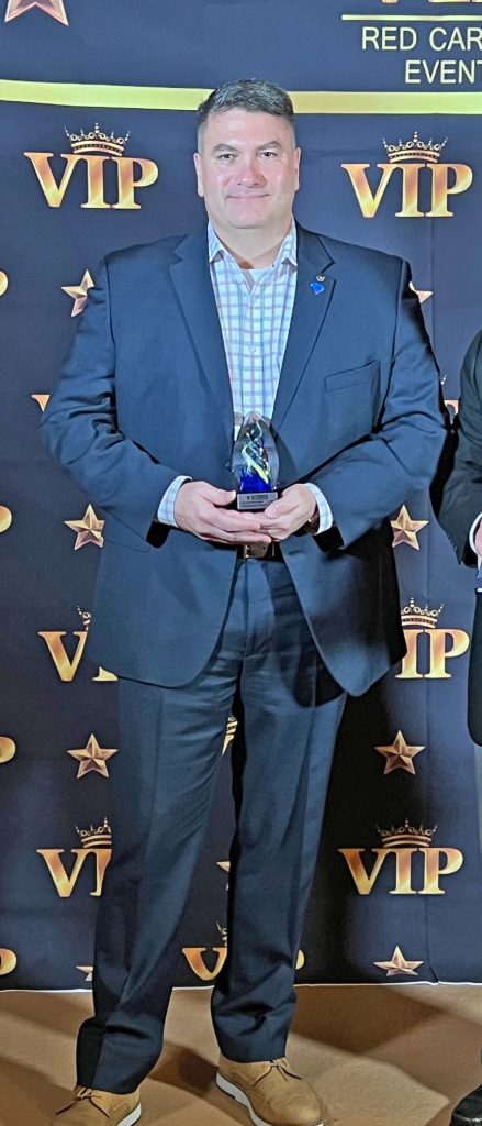 Jimmy Martin, realtor with Home Advantage, accepts award for Business Person of the Year.