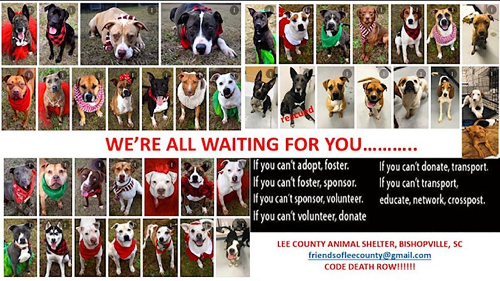 A volunteer day is set for Feb. 25 to help socialize the dogs, and clean, and organize the shelter. If you can’t come in person, but still want to help you can donate some cleaning and organizational supplies, as well as dog and cat food. The shipping address is 222 Airport Rd Bishopville, SC 29010. Monetary donations can be sent through PayPal at Leecountyshelter.