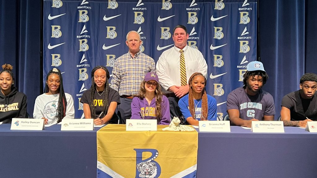 BLYTHEWOOD – Blythewood High School recognized seven members of the Class of 2023 Wednesday who have committed to continuing their athletic careers on the collegiate level. The seven student-athletes celebrated National Signing Day by announcing their college plans. The athletes represented the football, track, lacrosse, volleyball, and golf programs.