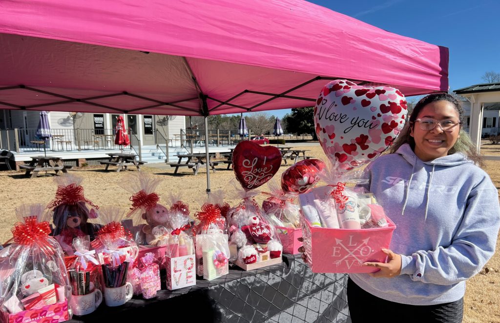 BLYTHEWOOD – Still need to purchase a special gift for a special Valentine? Elna Ortiz shows off one of the many Mary Kay Valentine’s gift baskets in various price ranges will be available the weekend of Feb. 10 -11, and again on Feb. 13 an 14 under the bright pink Mary Kay tent in front of Doko Station. Samples of the items in the baskets are available at the tent.