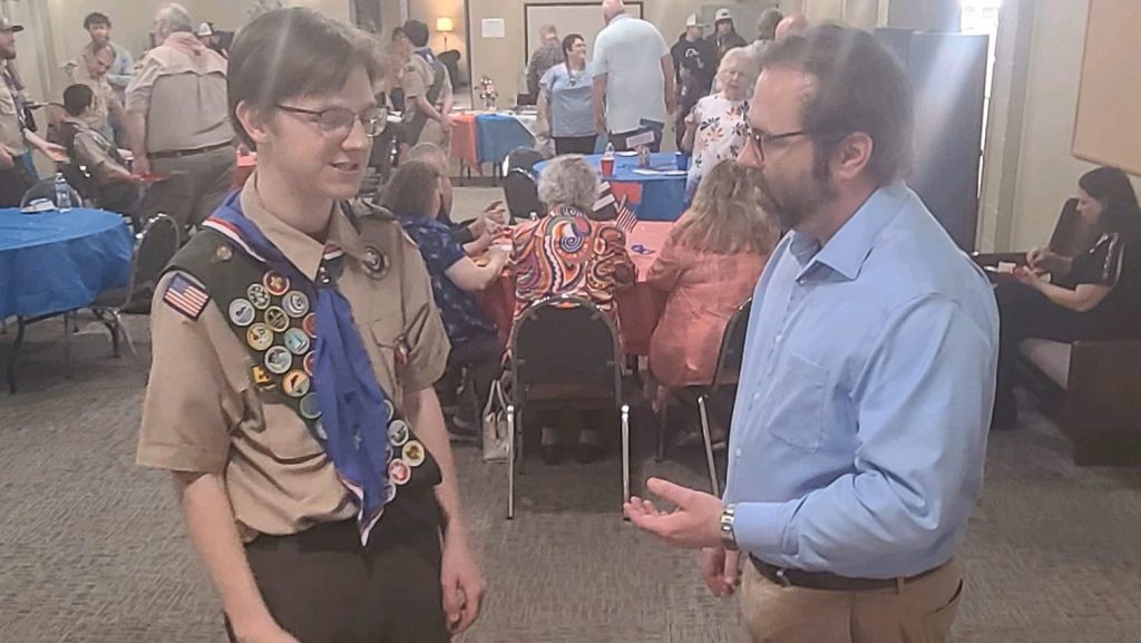 BLYTHEWOOD – Councilman Donald Brock congratulates Ryan Leadbitter of Ashley Oaks as he was awarded his Eagle Scout rank on March 25, 2023 at Trinity United Methodist Church.