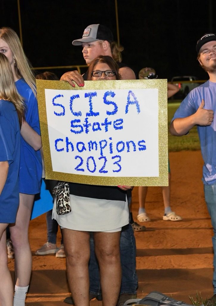 The Eagles returned to Winnsboro for a home-field celebration following Tuesday’s win at Jefferson Davis. Fairfield County Sheriff’s Deputies escorted the team from I-77 to Richard Winn. A crowd gathered on Congress St. near the Town Clock to welcome the new champs back home.