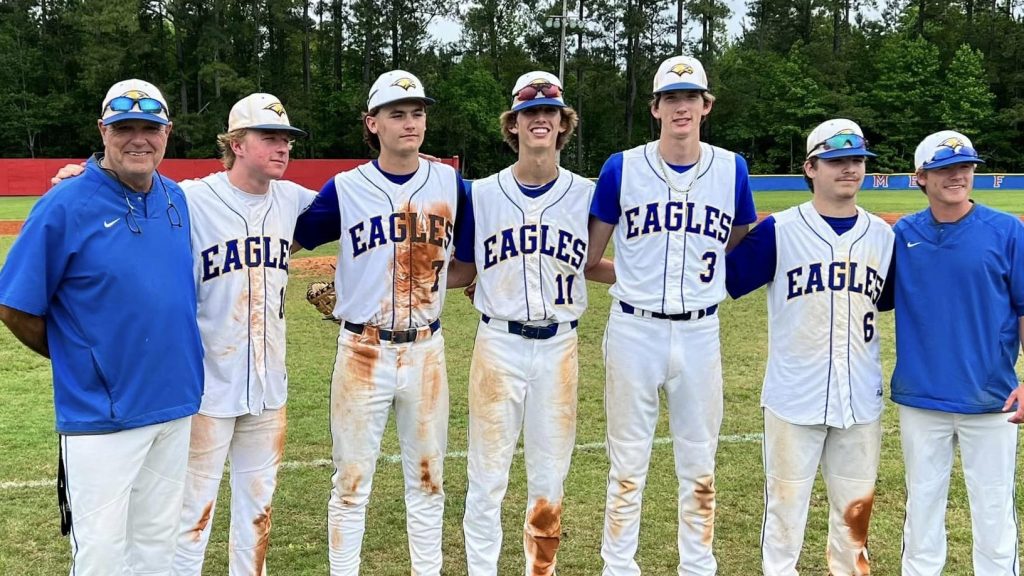 Pictured from left: Head coach Paul Brigman, Landon Caulder, Charlie Bonds, Miller Stuck, Lawson Wade, Jacob Chaisson and assistant coach Peyton Gilbert. Not Pictured: Rob WIlson and Connor Little.