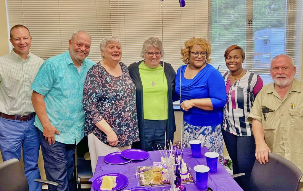 WINNSBORO – Friends and co-workers of Peggy Frick, Veterans Service Officer at the Fairfield County Veterans Affairs office in Winnsboro, gathered in her office last week to congratulate her and wish her well on her retirement.