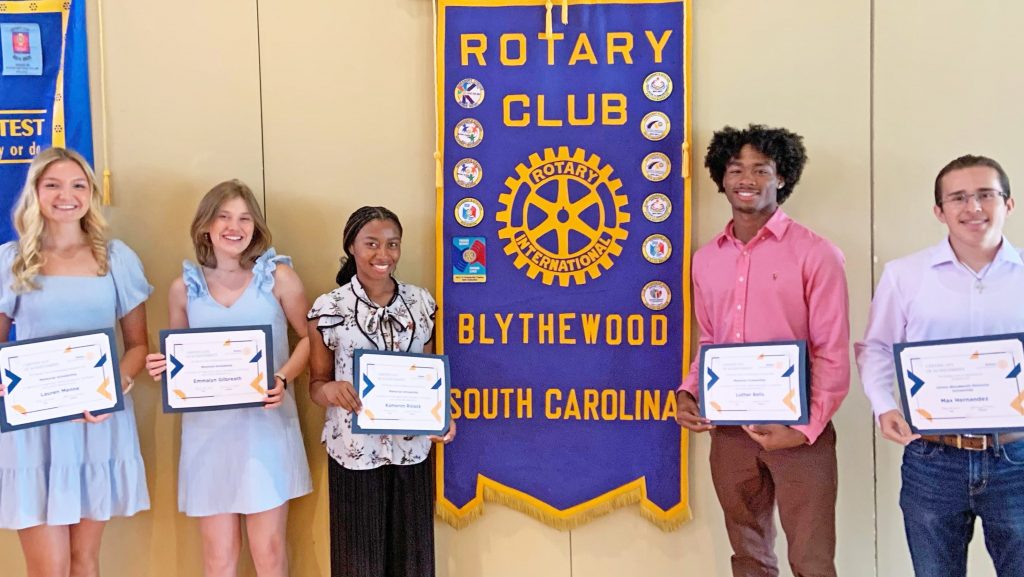 BLYTHEWOOD – Blythewood Rotary Club awarded a total of $11,000 in scholarships to Westwood and Blythewood High School graduates on May 25.