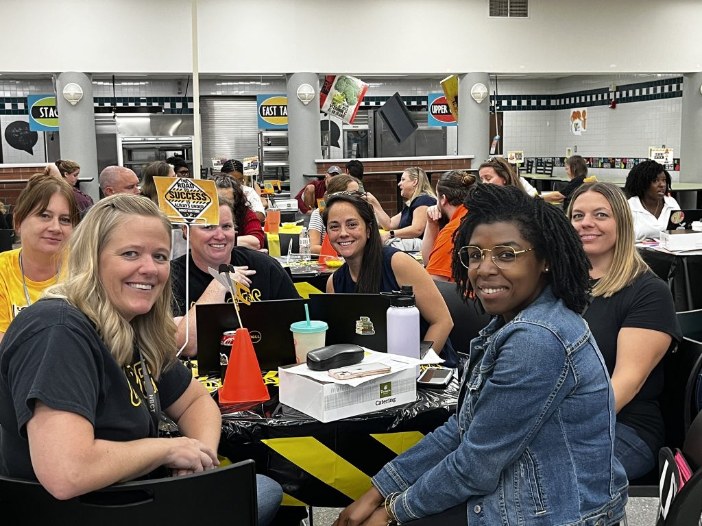 Pictured at right, Muller Road Middle teachers squeeze in some games on their first day. Above, Westwood teachers play Never Have I Ever.