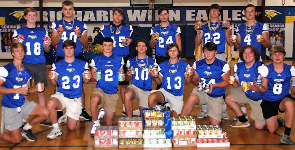 Each player was assigned a specific canned good, and votes for the Eagles Homecoming King were based off of the amount of points earned for donated canned goods. Over 4,000 cans were collected to be donated to a local food bank. | Photo: Martha Ladd