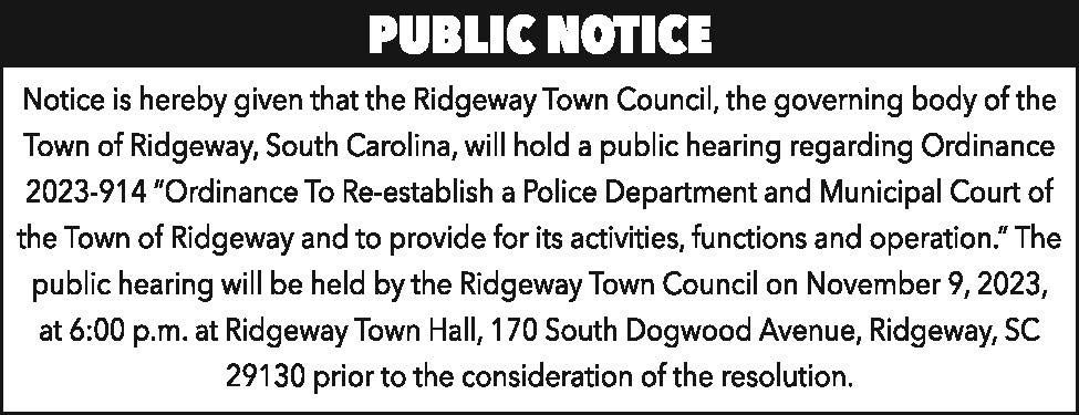 Public Notice: Town of Ridgeway