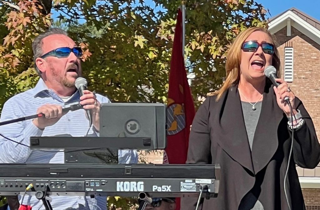 Lt. Col. Keith Bailey (Ret.), former Blythewood mayor, led those attending in the Pledge of Allegiance and recognized members of the five branches of the military. Salome Gajadhar led the singing of the National Anthem.