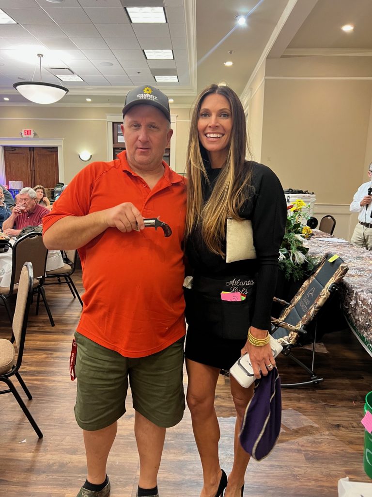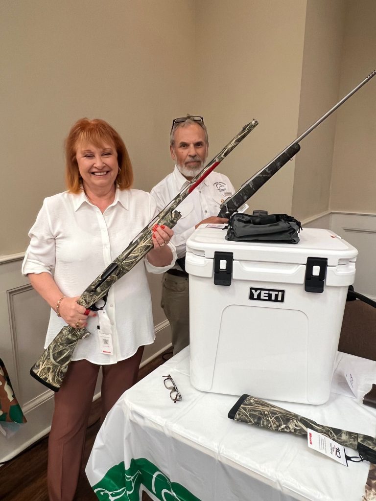 Raffle winner Sonya White and Eric Flemming, president of Blythewood’s chapter of Ducks Unlimited