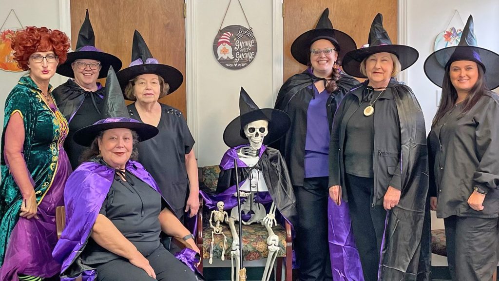 Businesses around Winnsboro were ready for Halloween on Tuesday. Pictured above, Fairfield Medical Associates employees.