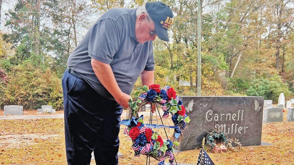 While in Winnsboro over the Veterans Day holiday, the Blevins family visited Sgt. Carnell’s grave in the Royal Pines cemetery where Rev. Blevins placed a wreath.