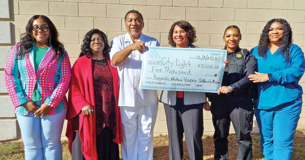 WINNSBORO – Bishop Jeffery Williams of Jesus Christ’s Church in Winnsboro presented a $5,000 check to Dr. Luella Redfern of City Lights on Monday. The donation was made on behalf of the Visions Outreach Missions, a non-profit arm of the church, toward the construction of a multipurpose building in Burgandi Totoro, Uganda.