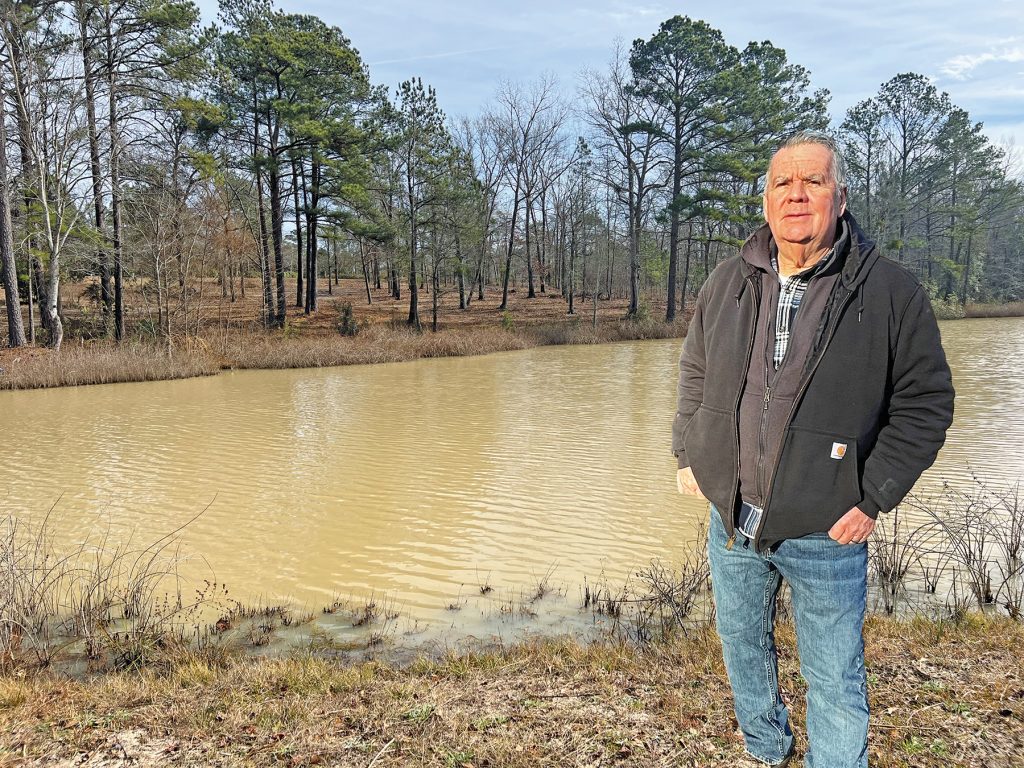 “I don’t want the water drainage from a mile of four-lane highway draining into my pond for the rest of my life,” says Dinkins. “The county should’ve purchased more property from the adjoining landowners for the drainage to be disposed of as it should be, the proper way.”