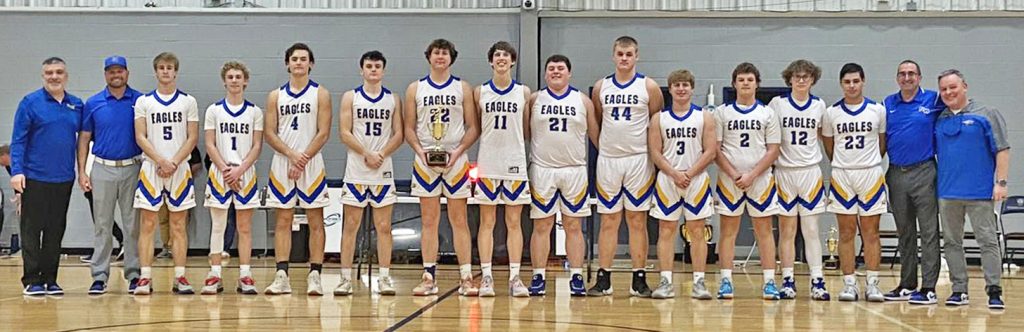 Seniors Drew Spires and Miller Stuck led the Eagle offense with 11 points each. Charlie Bonds had nine points.