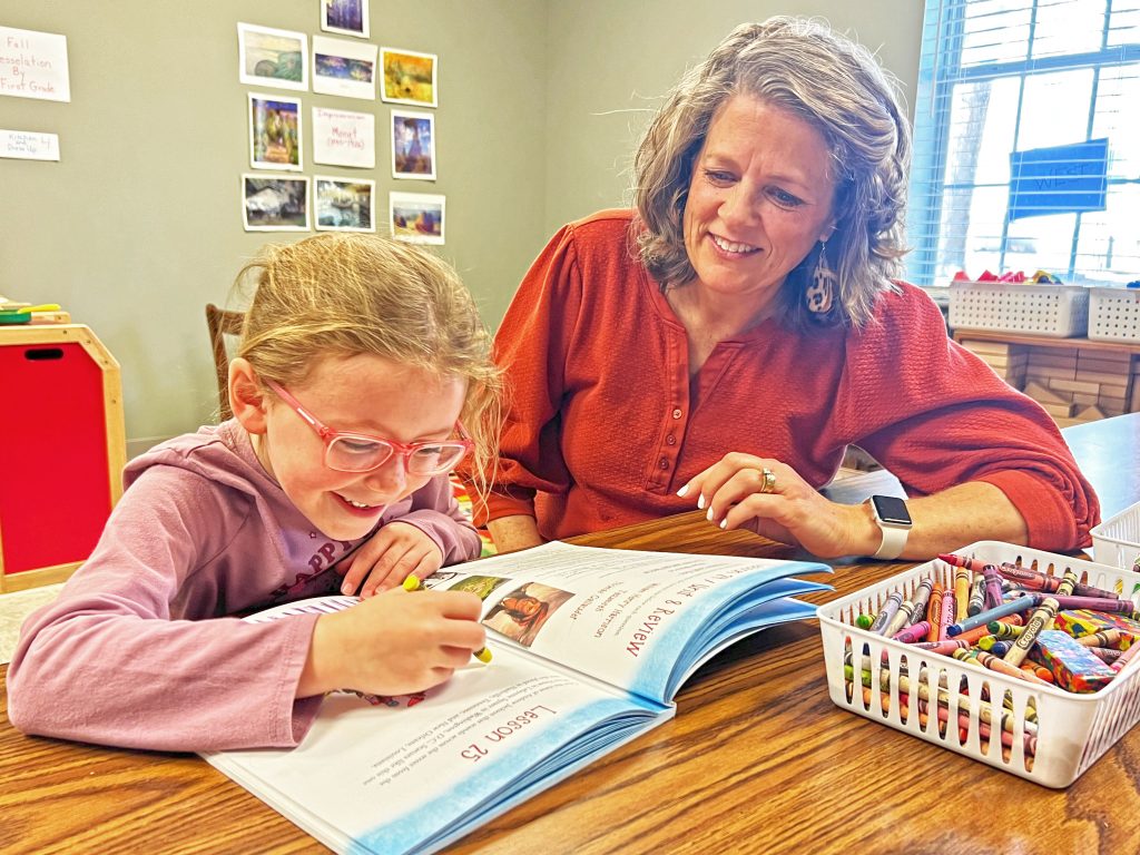 She says she and the other moms discussed the idea in December of 2021. By January, they had permission from Sandy Level Baptist Church, where her husband Scott is pastor, to use the facility there. The doors just kept opening, she says: The classroom rolls quickly filled, and the hybrid school began its first school year the following August.