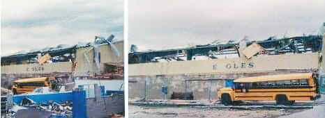 Amelia Ellison: I had a parent meeting scheduled for that night and because of storm I went early. Arrived at school to find no one. Only the bus through the wall and no roof on gym. Next thing I knew Robert Stidham and John mcneely shaking me and saying we needed to go help people in small town. They had been there on poach when it hit. Shortly police came and had us leave because of gas leak. An unbelievable feeling and sight. I had two rooms at school and neither got damaged. I left the window open in one and someone had broken the lab window with a football that day.