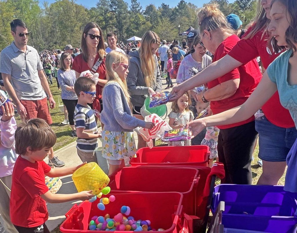 Hundreds of kids chased down more than 22,000 plastic eggs and exchanged them for bundles of candy before heading to the food tent for the free hot dogs and barbeque sandwiches with all the trimmings.