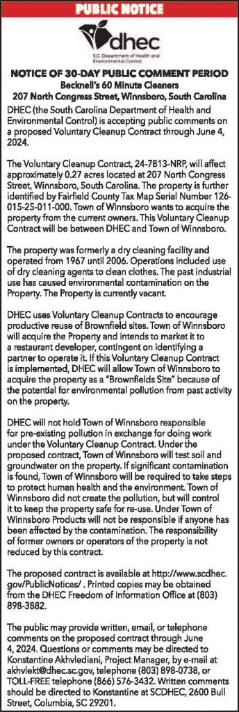 DHEC: 30-Day Comment Period