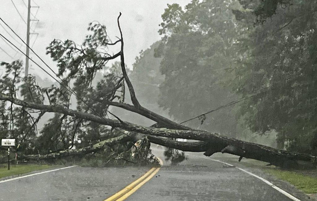 Over the next several hours reports came in with pictures and video of wind damage and flooding occurring in the Blythewood area. The most extensive wind damage occurred along Wilson Blvd near Transfiguration Catholic Church. A large tree was uprooted and blocking the road.