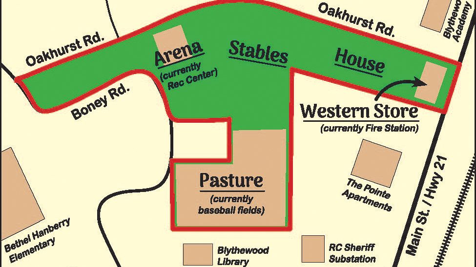 In 1958, Jim Jennings and his wife Sybil arrived in Blythewood, purchased 27 acres in the middle of town, and built a dude ranch. As the ranch took shape so did the town’s new culture. By all accounts of those who lived in Blythewood at the time, a large population of the town started riding horses at the JJ Ranch and dressing in western clothes that they purchased at the JJ Ranch’s western store which was located where the town’s fire station is today.