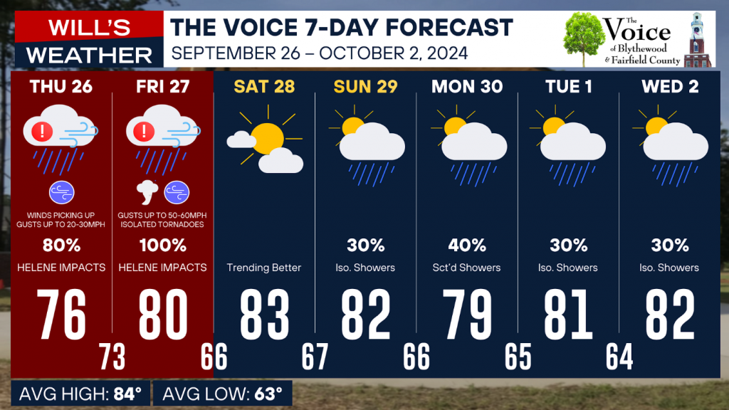 Since Helene is tracking to our west, that also puts us at risk of Tornadoes overnight Thursday and Friday morning.