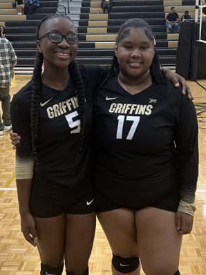 Chaniya Brown (5), Iyonna Adgers (17) and the Griffin volleyball team defeated Eau Claire with a 3-2 final.