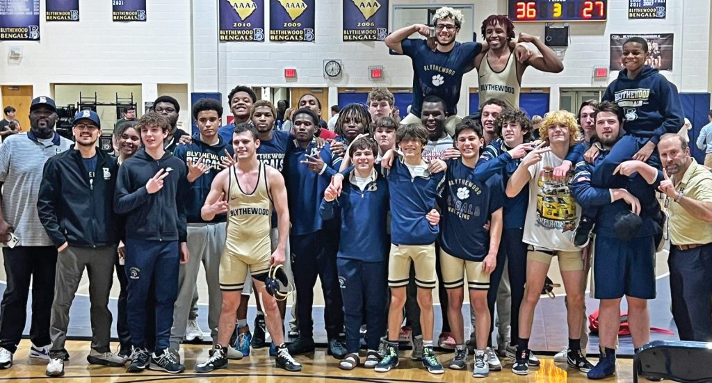 BLYTHEWOOD – “So proud of this group, which will go down as the greatest wrestling team so far in the history of this school,” said Blythewood wrestling head coach Paul Watson following the Bengals’ two-point loss to Boiling Springs High School in the Upper State match last Wednesday. “Most wins, went the furthest of any [Blythewood] team in the playoffs – they have worked so hard.”