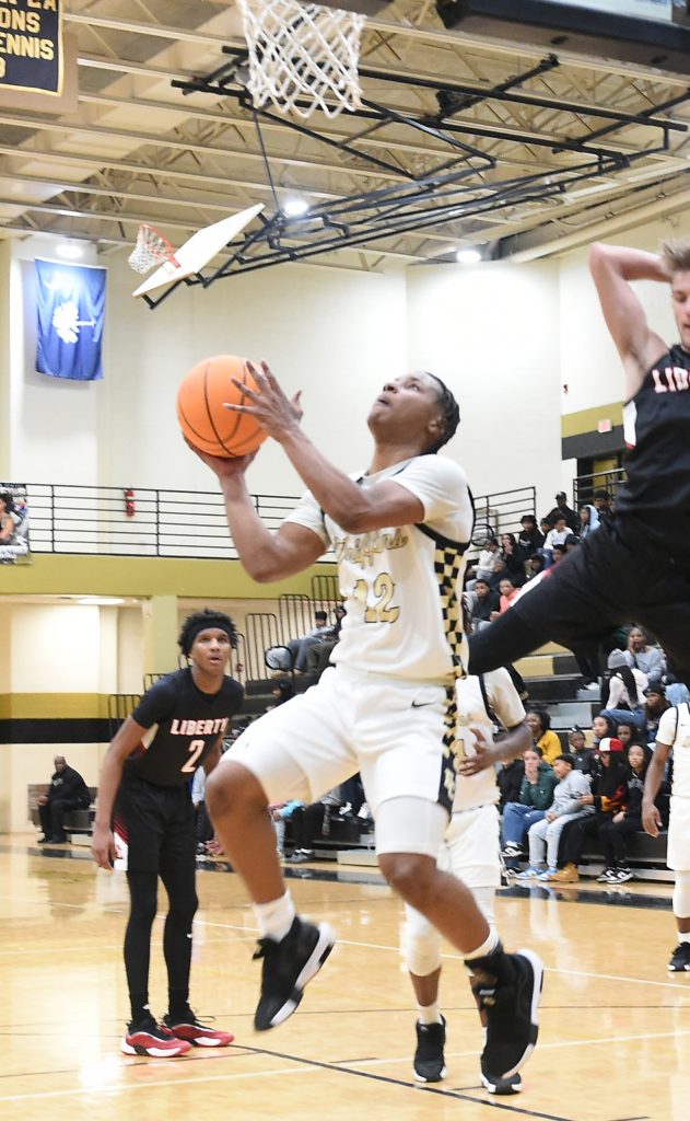 Desmond Edmonds goes for a reverse layup against Liberty in round one of the playoffs. | Joe Seibles