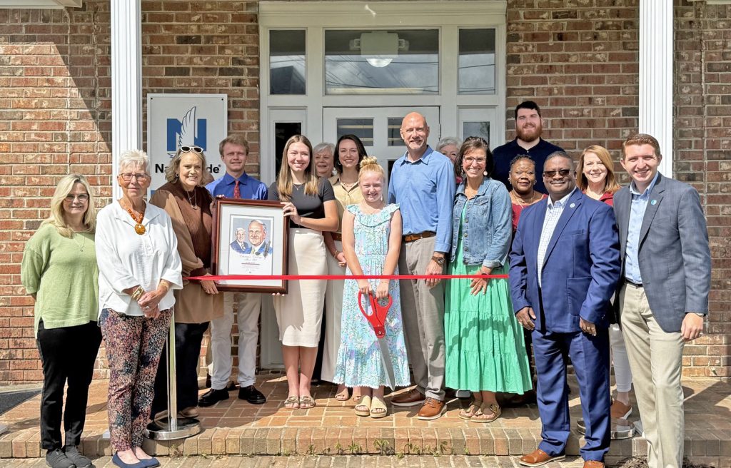 Cutting the ribbon in photo above are Wyatt family members Susie Wyatt Thomas, left holding photo, Grant Thomas, Peyton Wyatt, Julie Wyatt (tan shirt), Mary Cathryn Wyatt, Mark Wyatt, and Becky Wyatt.