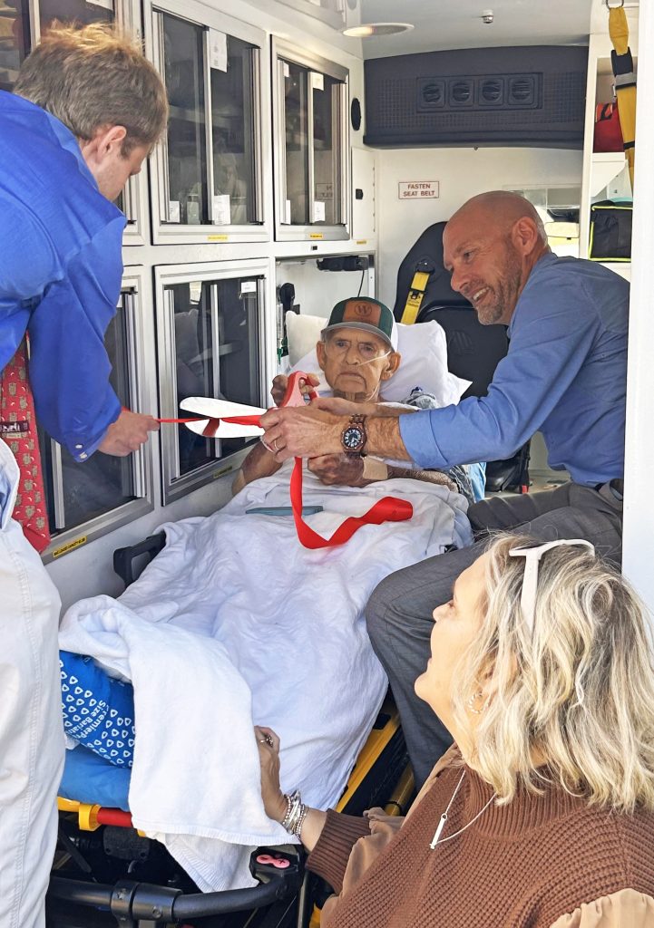 After that ribbon cutting, owner Ron Wyatt arrived via ambulance on his way to his home in Winnsboro and participated in an honorary ribbon cutting with his son Mark Wyatt at his side to savor the moment (picturd below).