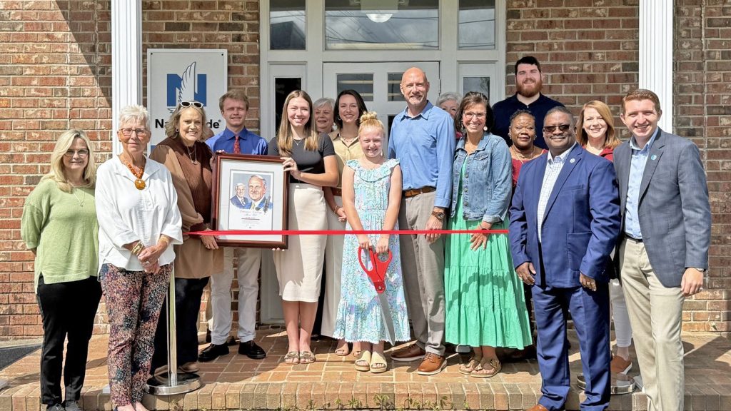 Cutting the ribbon in photo above are Wyatt family members Susie Wyatt Thomas, left holding photo, Grant Thomas, Peyton Wyatt, Julie Wyatt (tan shirt), Mary Cathryn Wyatt, Mark Wyatt, and Becky Wyatt.