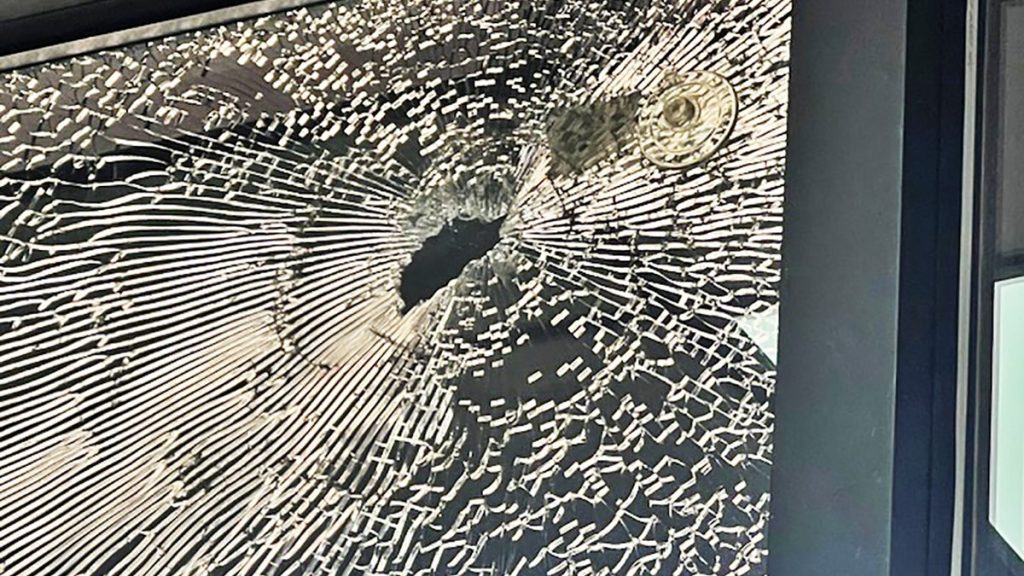 The eyewitness did not see any shooting at the Exxon Sharpe Shoppe, but The Voice photographed a bullet hole in the window of the convenience store the next morning. The Sharpe Shoppe re-opened about 6 a.m. Sunday.