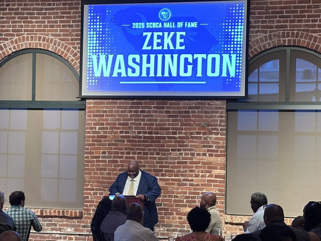 At a ceremony in Greenville July 29, Washington and three other coaches were formally inducted into the South Carolina Basketball Coaches Hall of Fame.