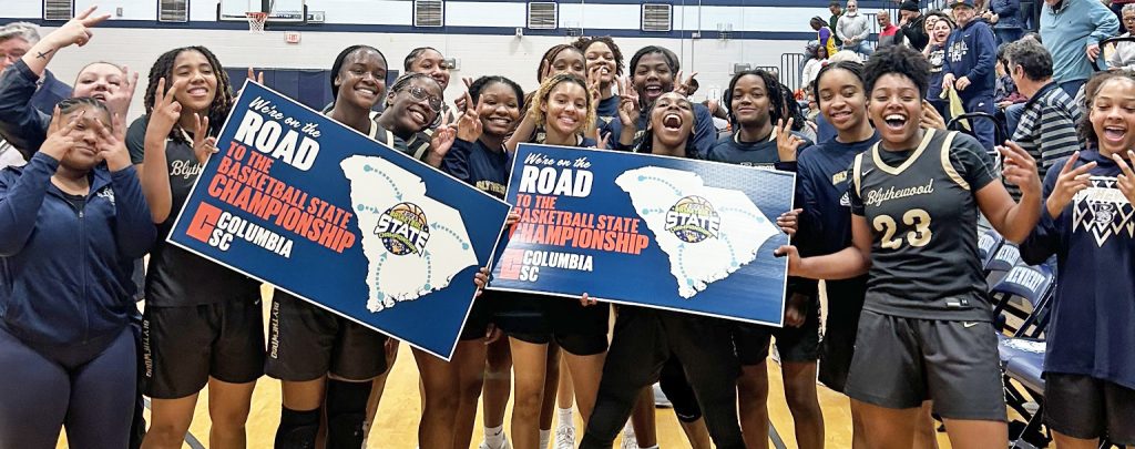 Noting No. 4 Blythewood’s upset of No. 1 seed Dorman 54-52 earlier in the week, head coach Emily McElveen-Schaeffer credits her team with digging deep and finding a way to win on the road against another tough opponent.