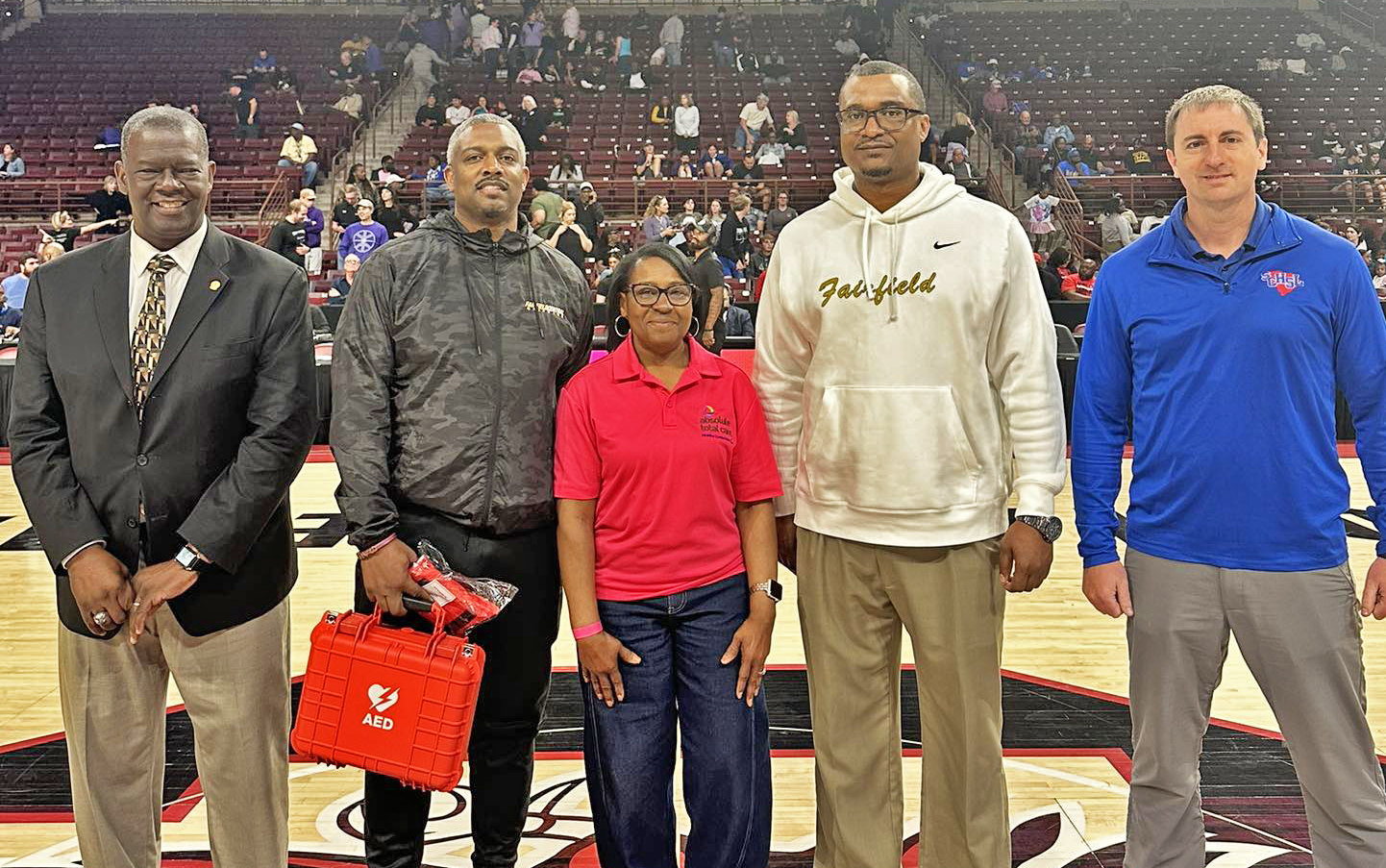 COLUMBIA – During the South Carolina High School League’s state championship games, Fairfield Central High School was selected as one of the winners of the ‘Absolute Total Care AED Challenge.’ Through this initiative, the Griffins received a life-saving AED device.