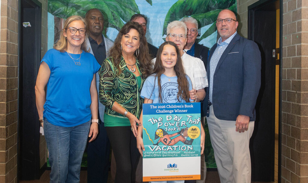 WINNSBORO – A Fairfield Magnet School fourth grader is getting statewide recognition for creating an award-winning children’s book. Stella Grace Burroughs, 10, won the $500 top prize out of nearly 200 entries in the 2026 South Carolina Book Challenge, an extracurricular contest sponsored by the Electric Cooperatives of SC. Her book, The Day the Power Took a Vacation, is a creative re-imagining of her experiences during the power outage and storm damage of Hurricane Helene in 2024.