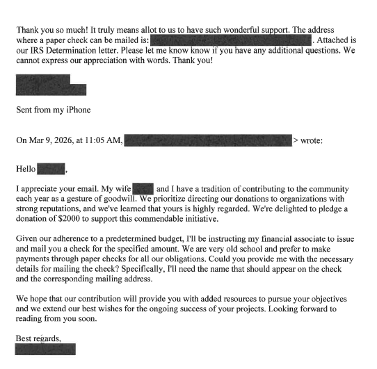 The donor email may not be so much evidence of fraudulent fundraising activity by Feltner as it is a local snapshot of a nationwide scam that has targeted animal rescue and animal welfare nonprofits across the country since mid-2025.